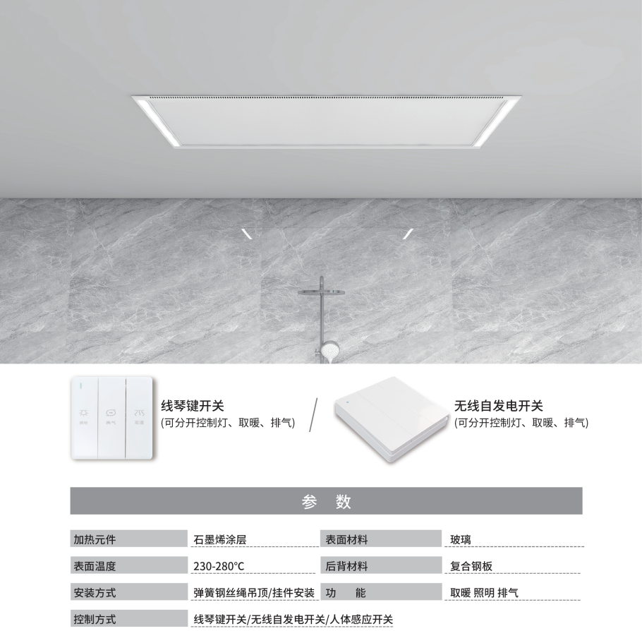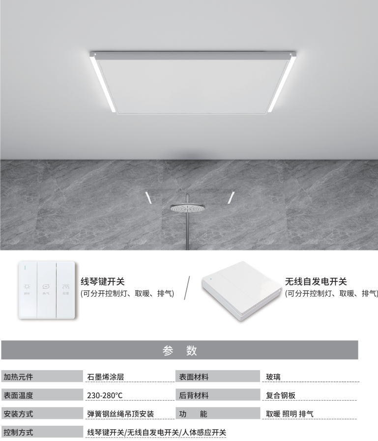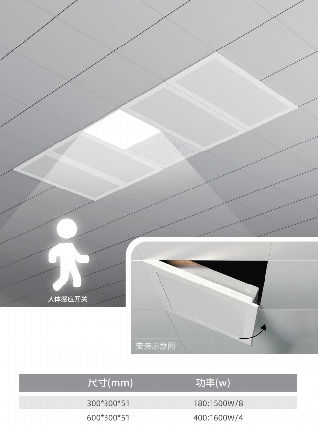 一体悬浮式浴霸 预留孔洞至少一边600mm以上
